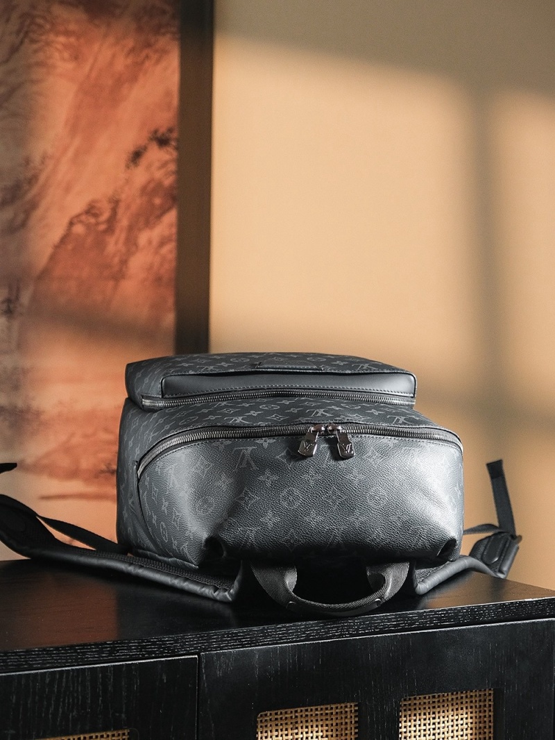Purchase the DISCOVERY classic men's backpack in black monogram canvas for the retail price of 18200 RMB. The black monogram tones give off a more understated and classy look compared to the classic floral patterns, making it versatile and suitable for any occasion. The backpack features ample space, with details on the shoulder straps made of genuine leather for a premium feel. Whether for work, daily outings, or travel, this backpack is a must-have! Its gender-neutral design is versatile and s