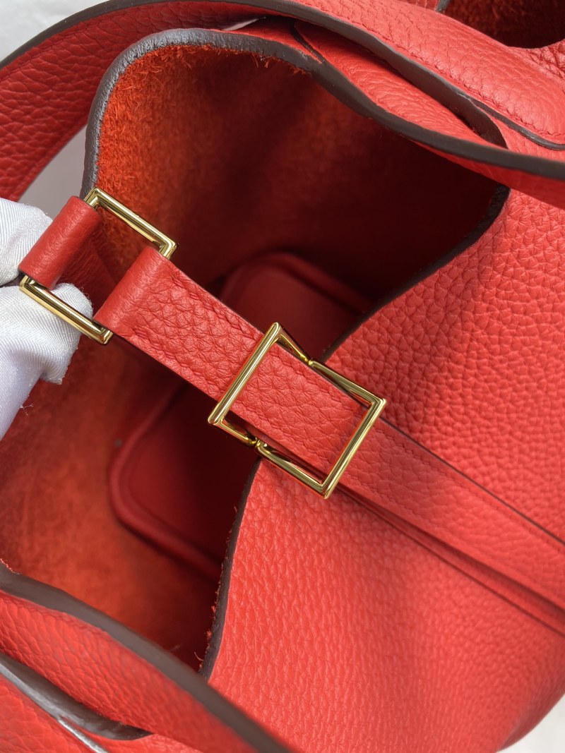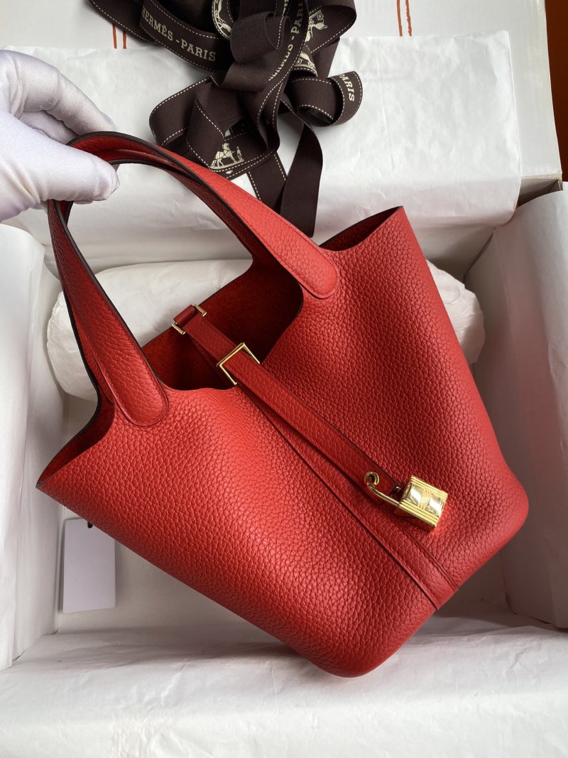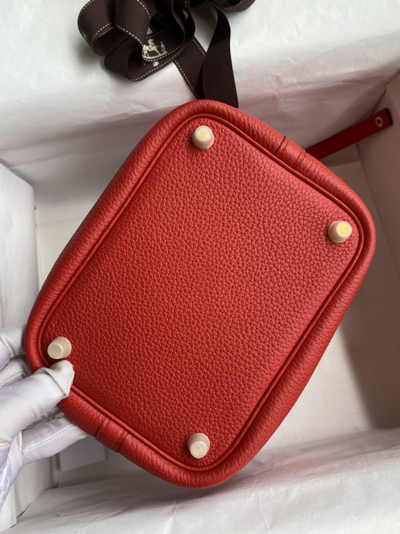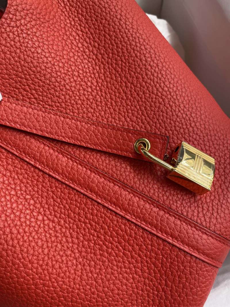 In Stock: Handmade👉Picotin...18cm Basket Imported Taurillon Clemence Leather in Flag Red with Gold Buckle