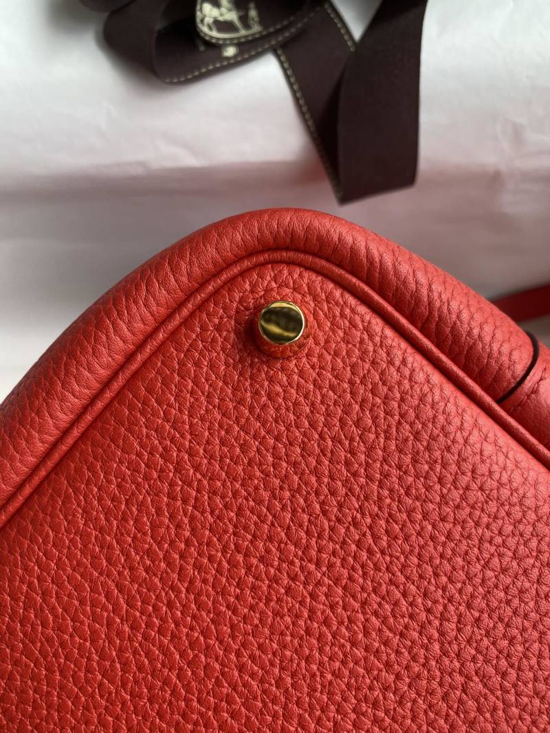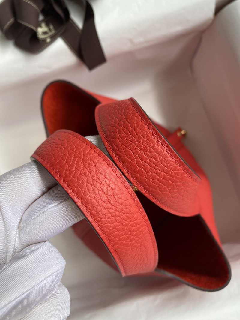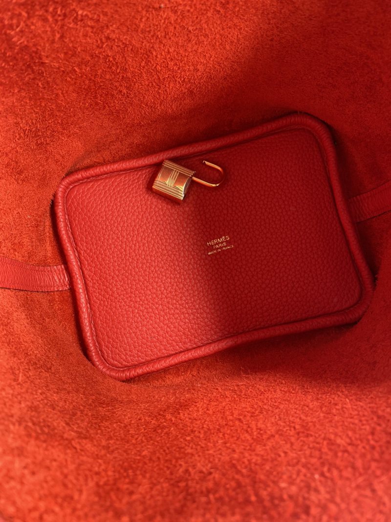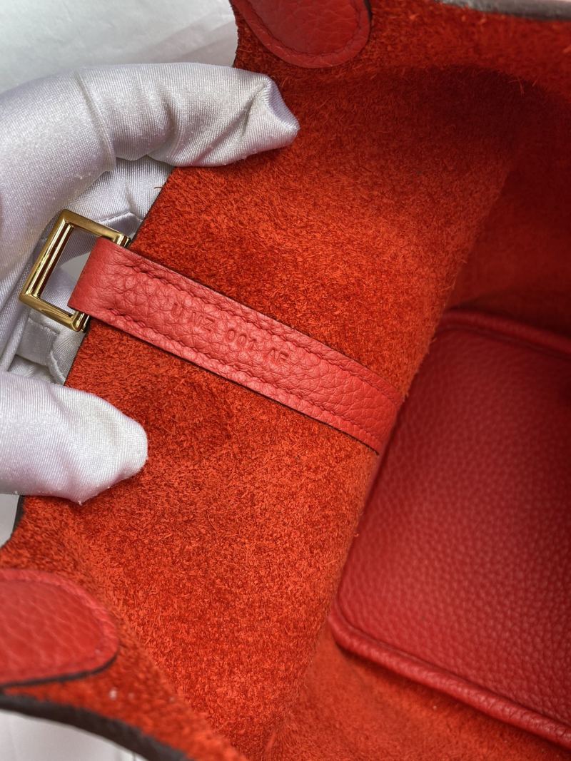 In Stock: Handmade👉Picotin...18cm Basket Imported Taurillon Clemence Leather in Flag Red with Gold Buckle